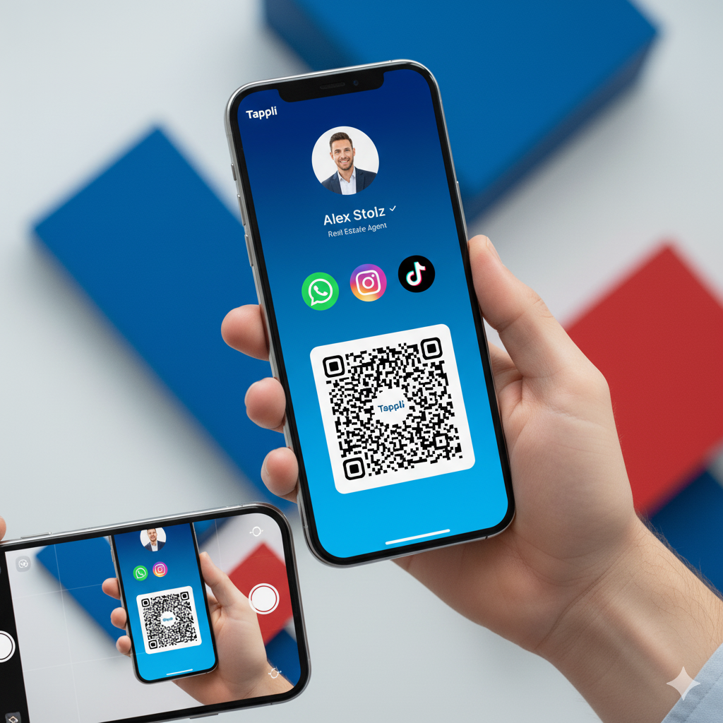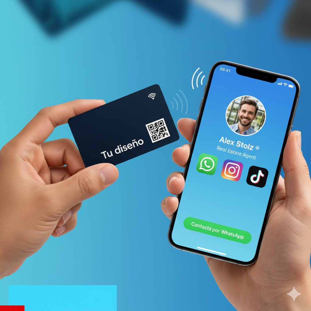 Contacto, redes, sitio web y WhatsApp en segundos.